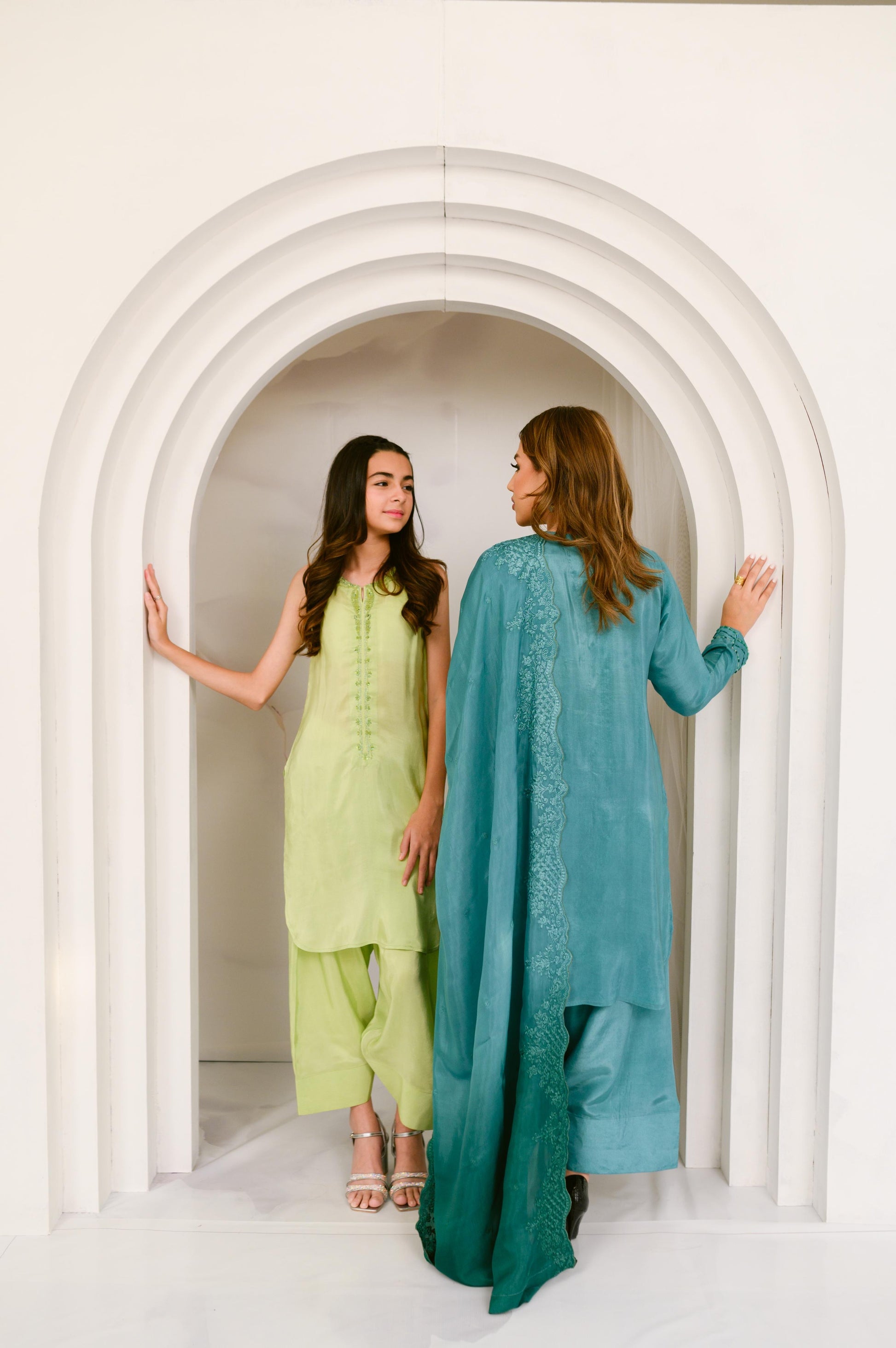 Introducing the Bloom Kids Silk Shalwar Kameez, perfectly crafted for young girls who love elegant Eastern wear. Made from luxurious silk, this beautiful outfit features intricate handwork on the neckline, adding a unique touch to any occasion. Ideal for celebrations and festive gatherings, the Bloom Kids shalwar kameez blends tradition with style, ensuring your little one stands out in grace and comfort. Perfect for kids who cherish quality and elegance!