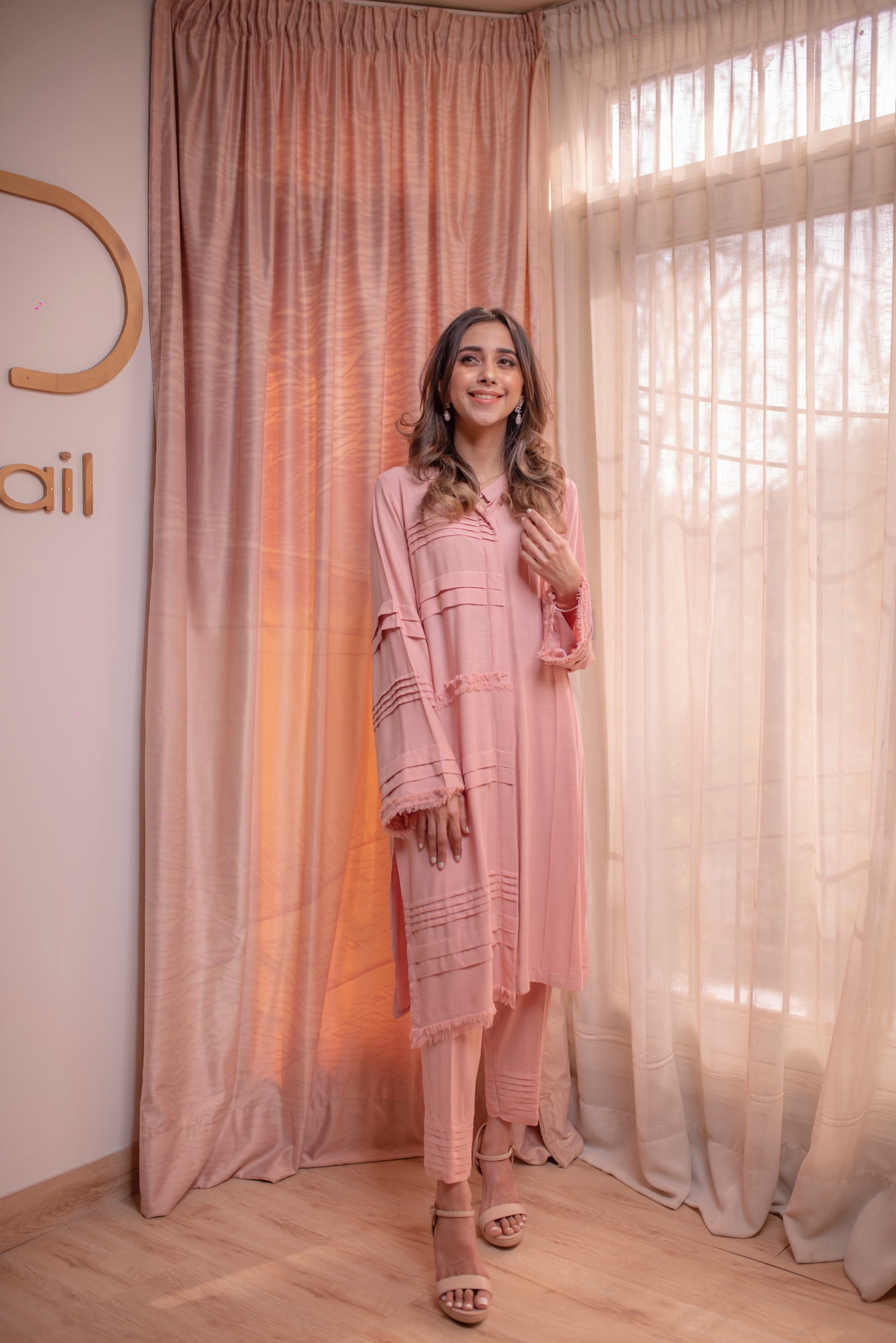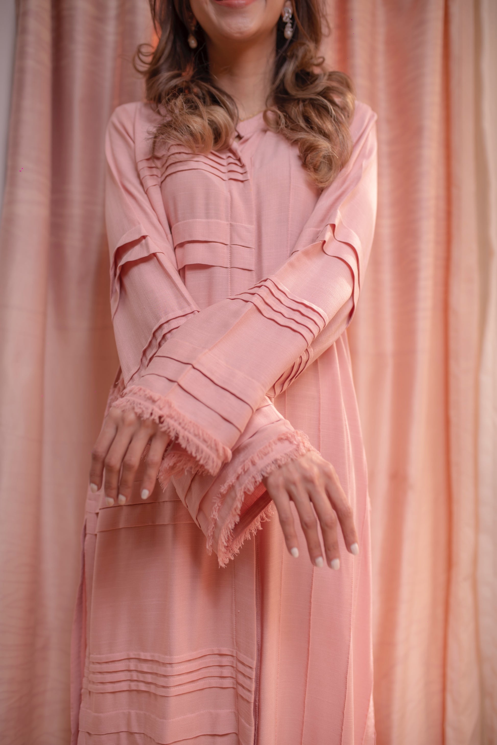 Pink Irish Linen Pleated Kurta with Matching Pants, a perfect ensemble for those looking to elevate their ethnic wardrobe. Made from premium-quality Irish linen, known for its luxurious texture and breathability, this ensemble exudes elegance and comfort.