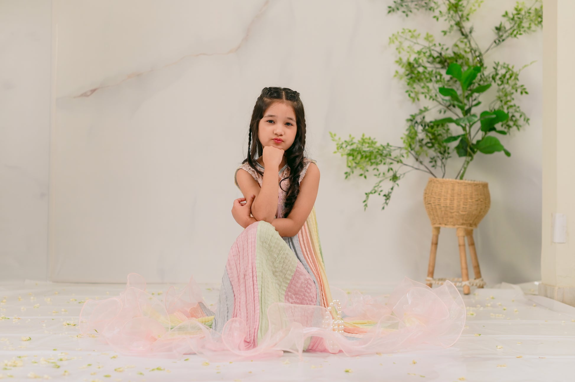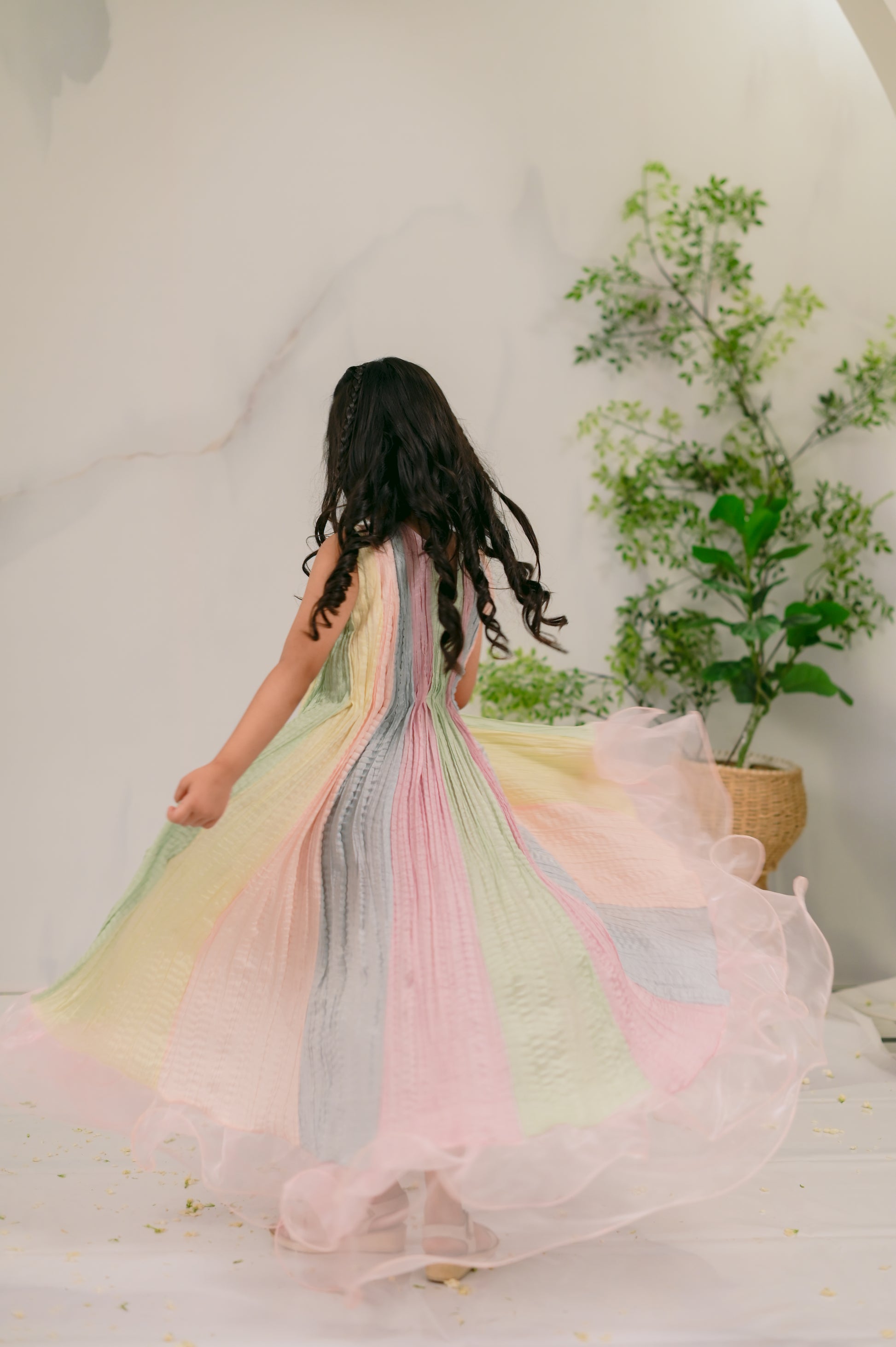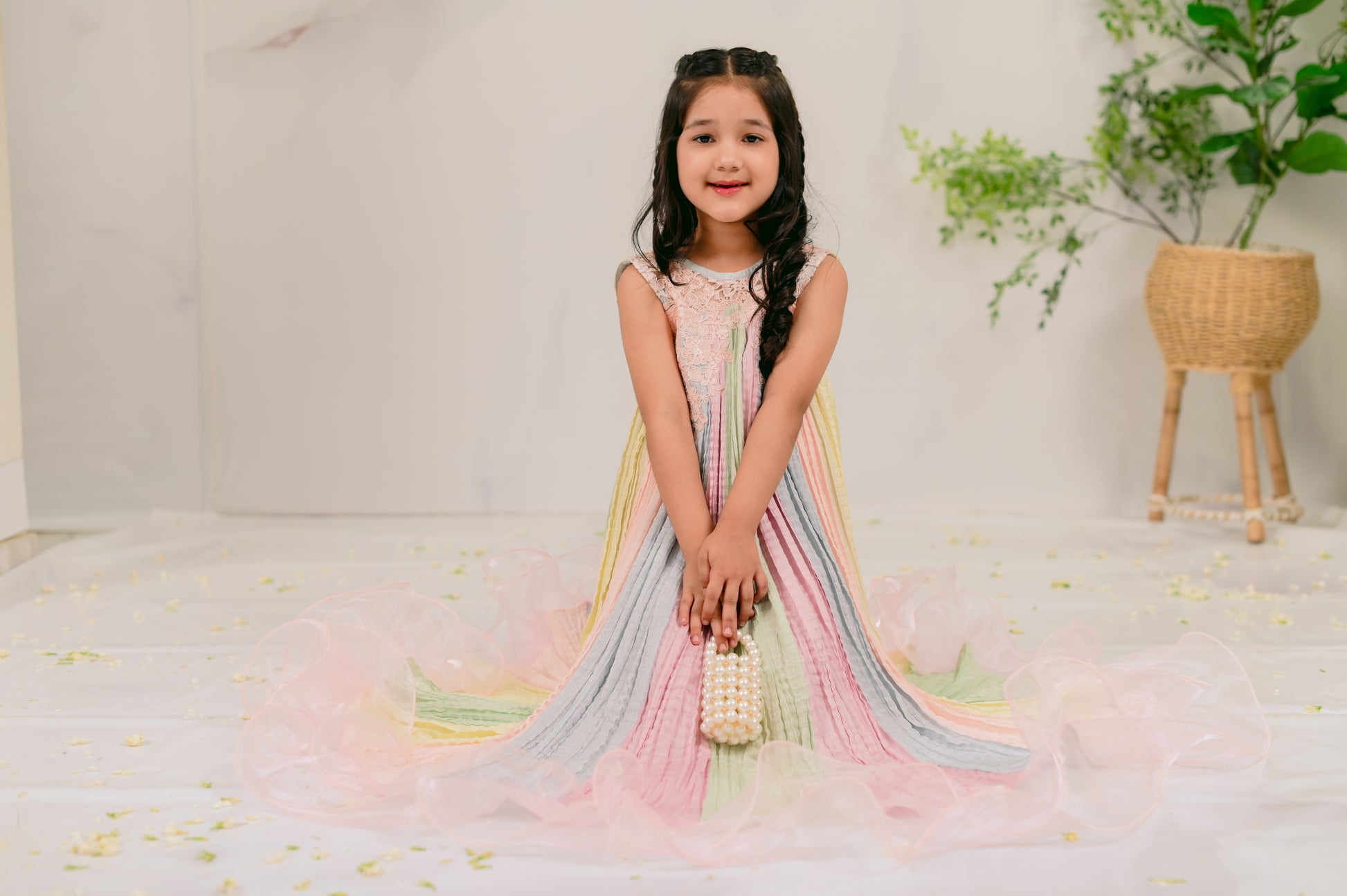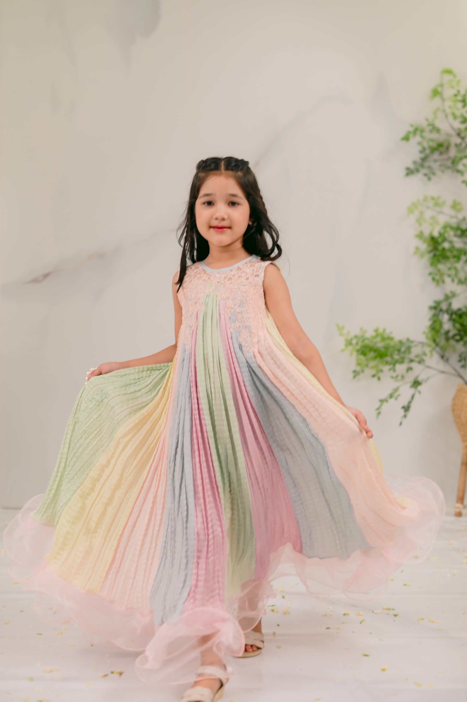 Introducing Day Dream: a captivating kids' eastern wear piece designed for Eid celebrations. This enchanting one-piece outfit features a beautiful blend of five dreamy pastels, exuding charm and elegance. Delicate lace trimmings adorn the neckline, while playful frills at the bottom add a whimsical touch. Perfect for your little ones to shine during festive occasions, Day Dream combines comfort and style, making it an essential addition to their wardrobe. Shop now and let your kids embrace the magic of Eid in this stunning outfit!
