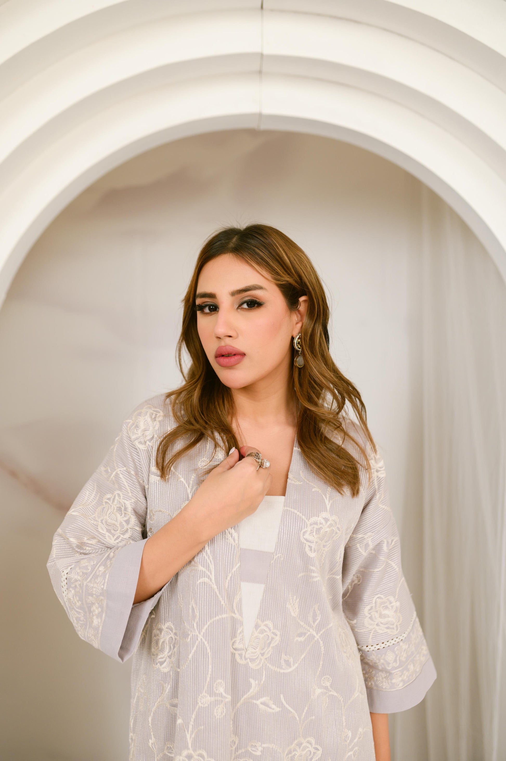 Introducing Elysian, our elegant Self Lawn Kaftaan Shirt, embellished with intricate Offwhite embroidery that exudes sophistication and comfort. Perfectly paired with plain pants, this ensemble is ideal for any casual or semi-formal occasion.