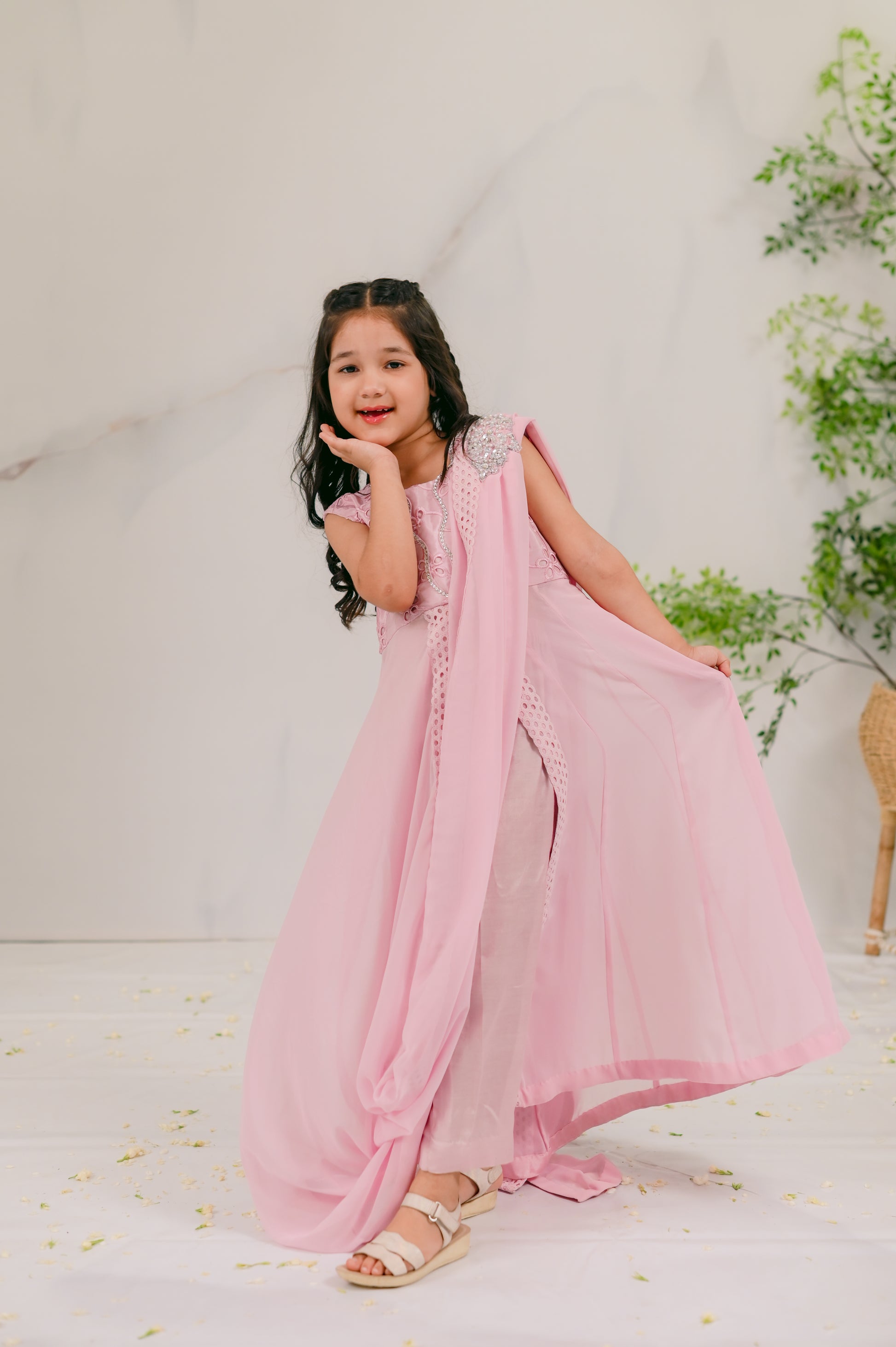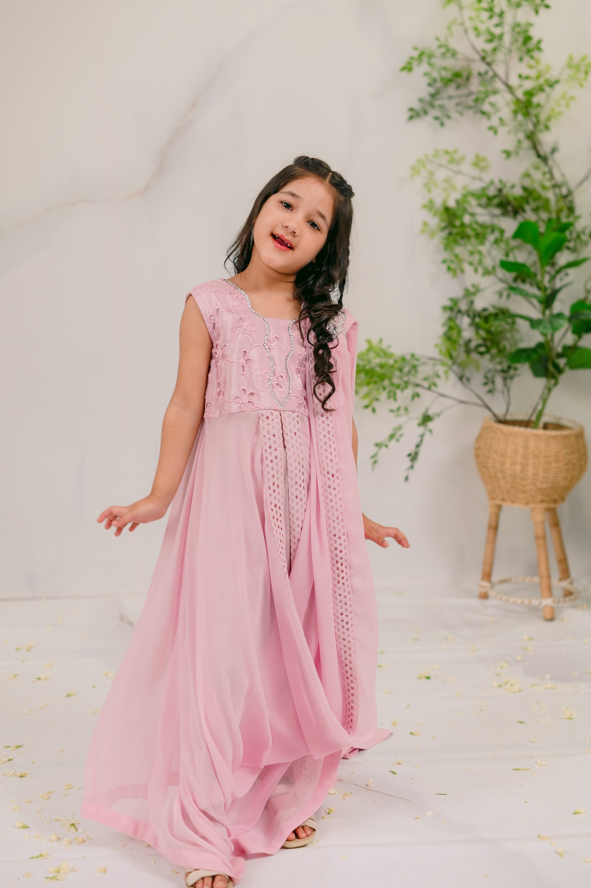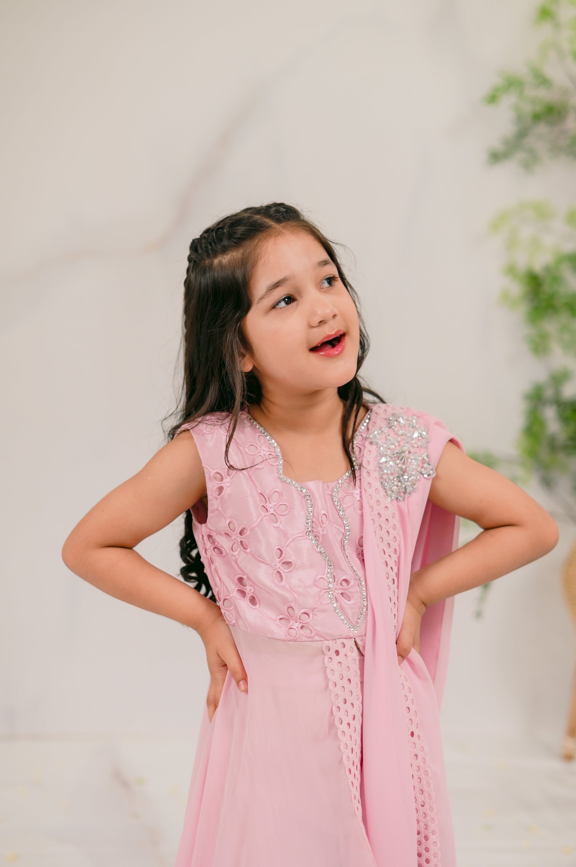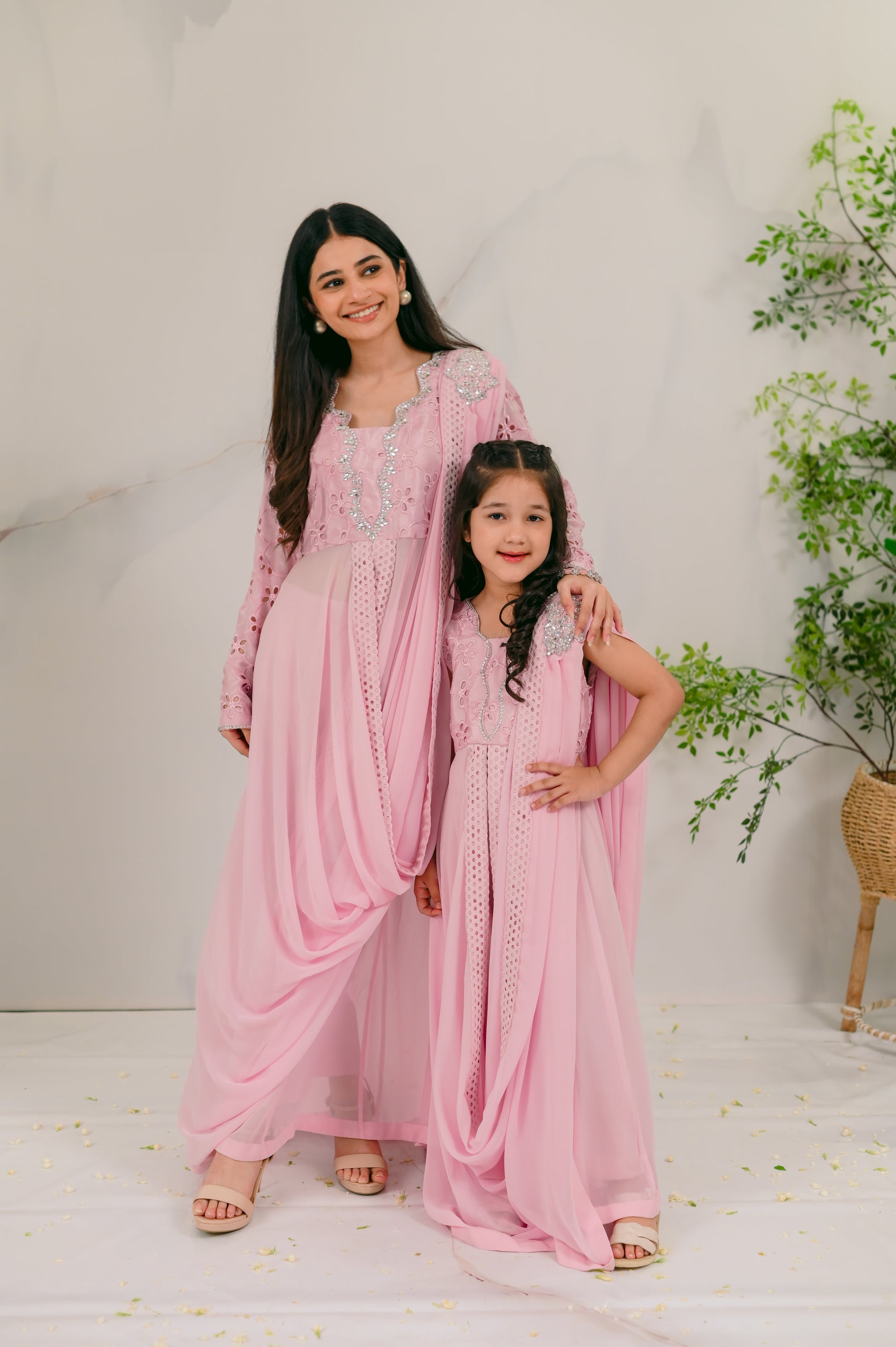 Elevate your Eid celebrations with our stunning Glimmer Mommy and Me outfit, perfectly designed for women and girls. This exquisite ensemble features a luxurious cutwork silk bodice and sleeves adorned with intricate stone work, exuding elegance and sophistication. The flowing georgette flair drapes beautifully like a sari, creating a dreamy silhouette that captivates. Ideal for festive gatherings, this matching outfit brings mother-daughter bonds to life in style. Shop now to celebrate Eid in radiant harmony!