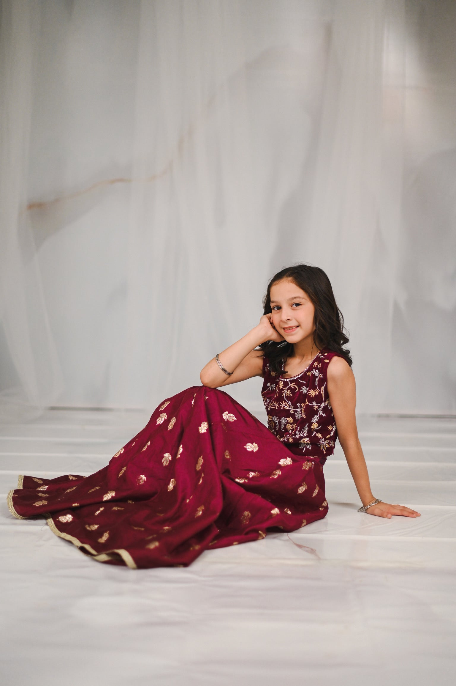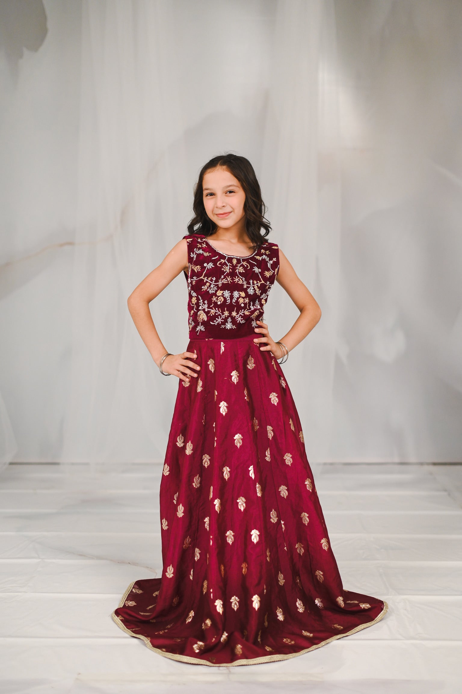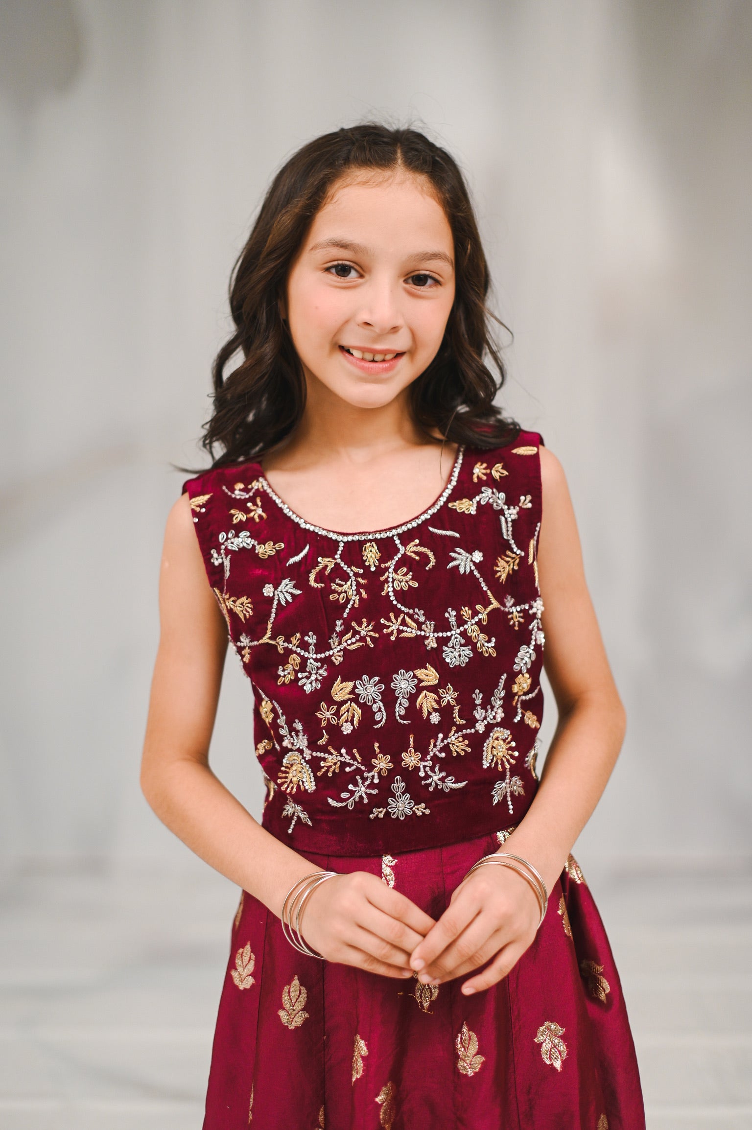 Discover the enchanting world of kids' eastern wedding wear with our stunning teal velvet choli paired with a banarsi silk shaded lehnga. This exquisite outfit is perfect for special occasions, blending tradition with contemporary style. Crafted with care, the soft velvet with hand work adds comfort and elegance, while the intricate banarsi silk brings a touch of luxury. Ideal for weddings, festivals, or family celebrations, this ensemble ensures your little one stands out. Shop now for the perfect fusion of comfort and style in kids' ethnic fashion!