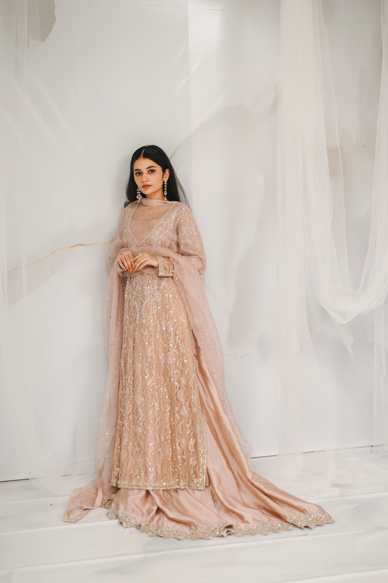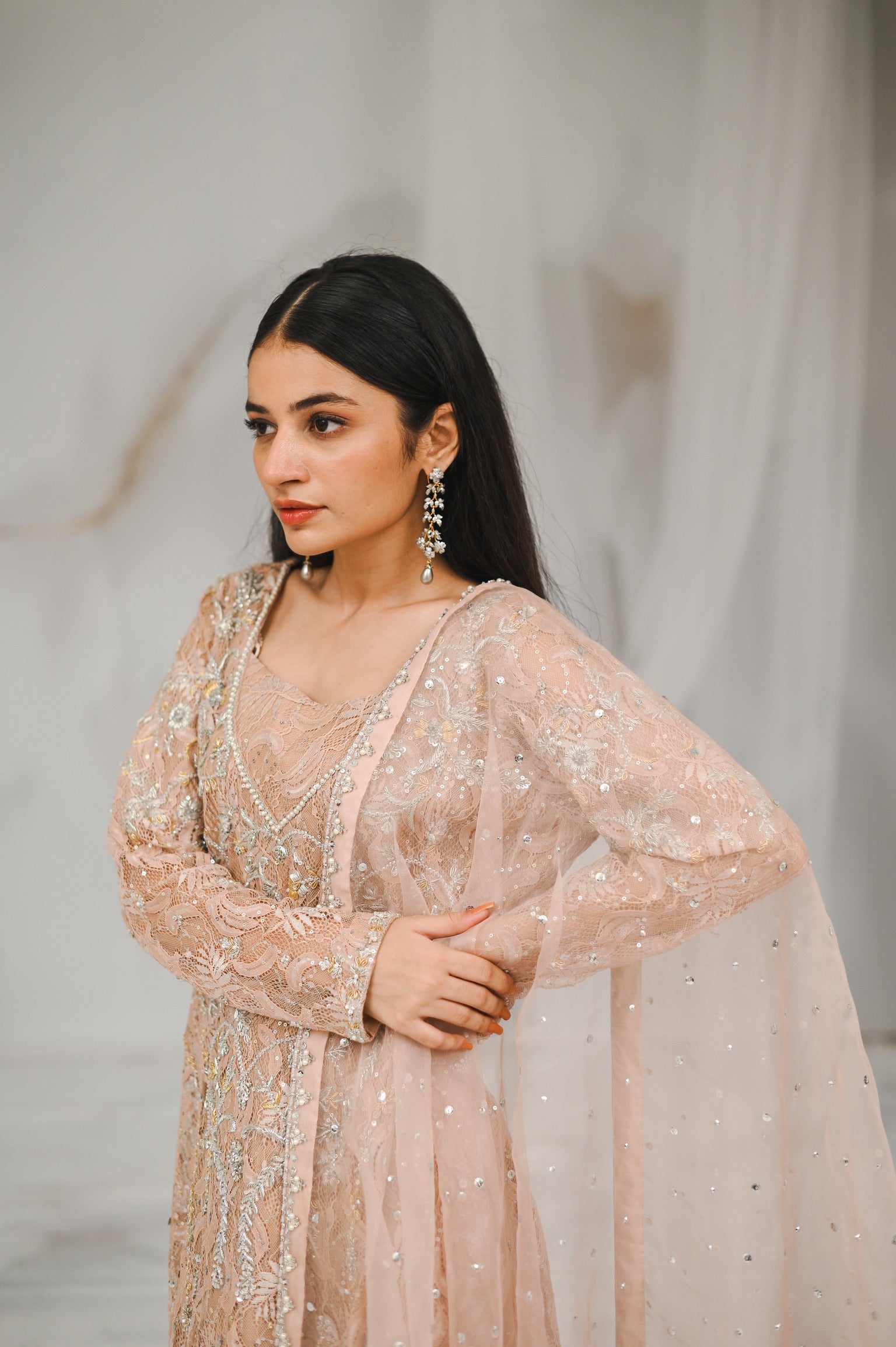 FABRIC DETAILS: Net shirt, Sheesha silk sharara, Pure Organza Dupatta