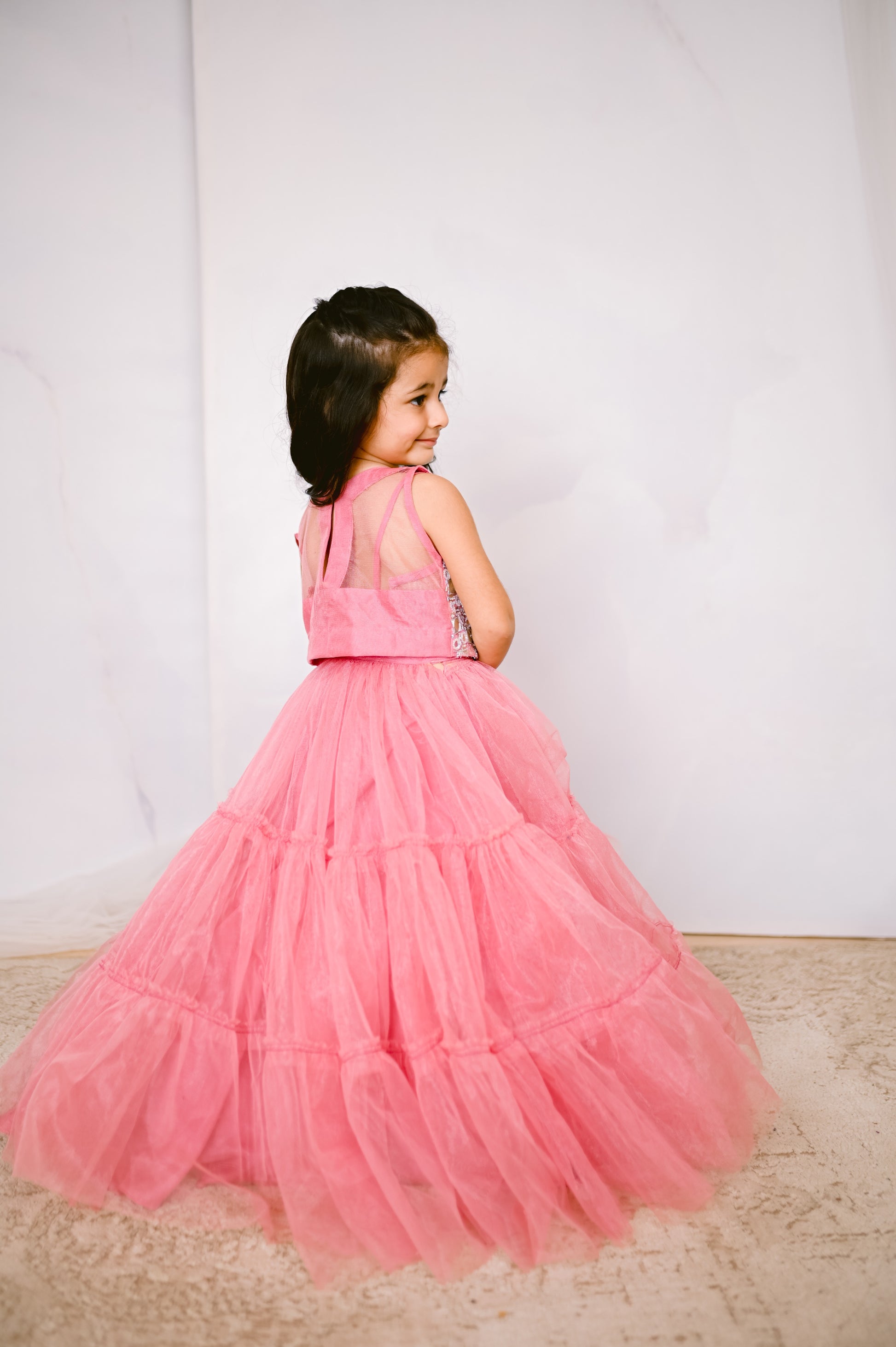 This pink formal outfit radiating femininity and charm making it a perfect statement for your little one. The rosy hue enchants like a sunset's glow, while the intricate details weave a story of glamour. For special moments or simply to celebrate the wonder of childhood, this outfit brings a burst of joy and innocence to any wedding occasion.
