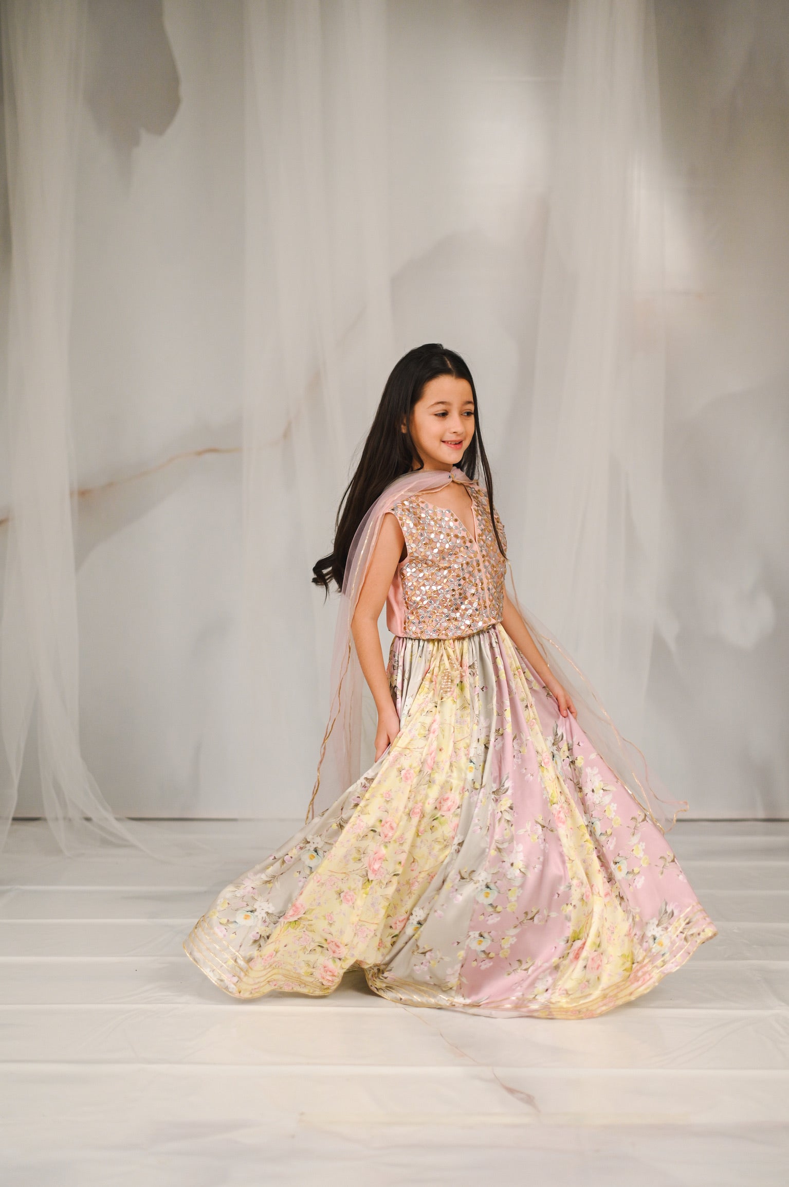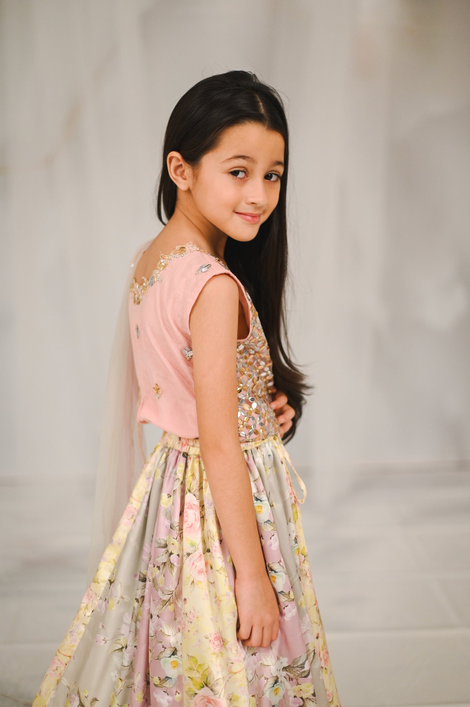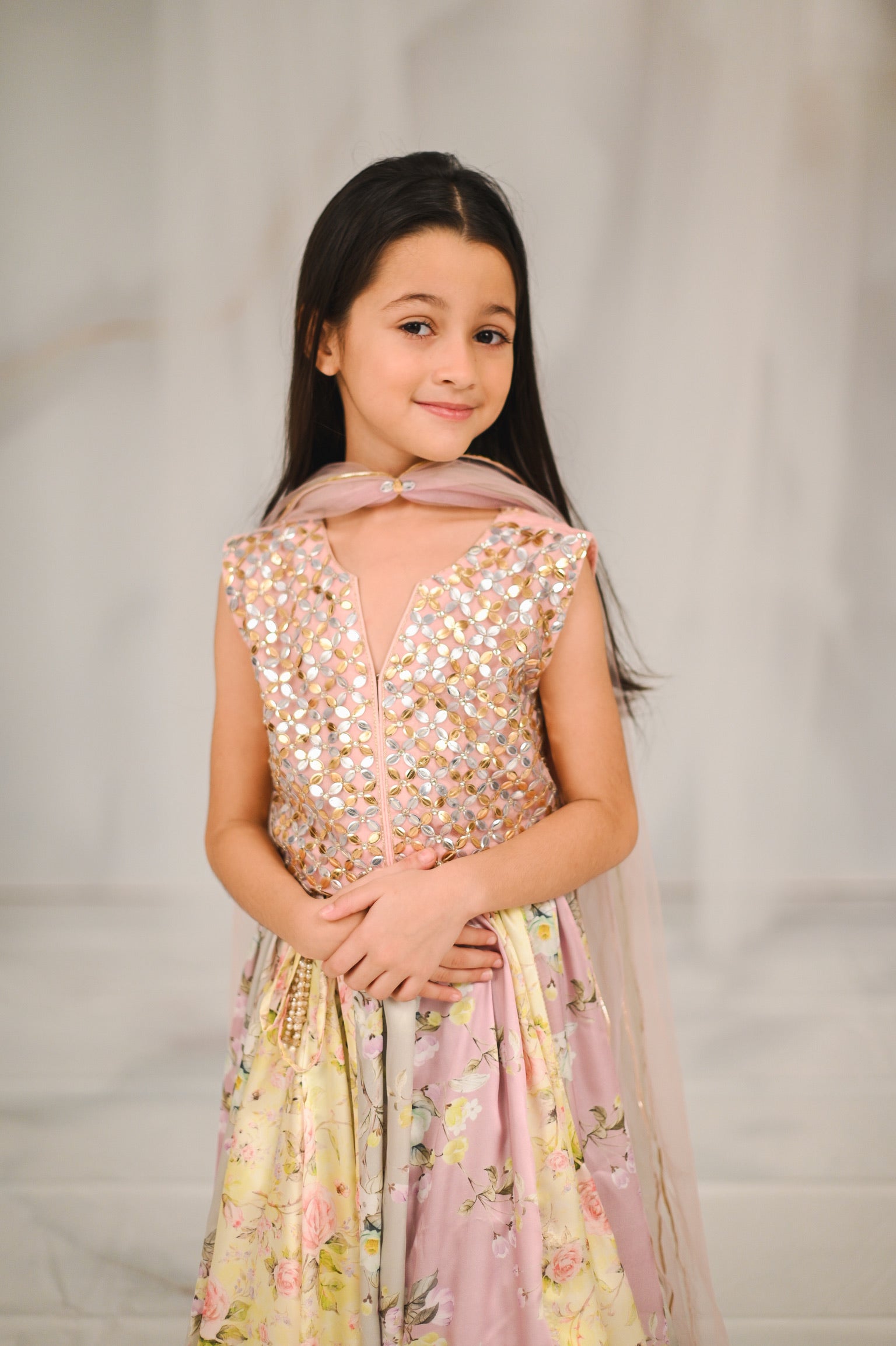 Discover our stunning kids' Eastern wedding wear featuring a multi-colored silk Sharara, perfect for special occasions. Paired with a beautiful pink Choli, this outfit boasts heavy sequins hand-embellished throughout for that extra touch of sparkle. The luxurious fabrics ensure comfort while making your little one the center of attention. Ideal for weddings, festive celebrations, or family gatherings, this ensemble combines traditional elegance with modern flair. Shop now to find the perfect attire for your child's joyful moments!