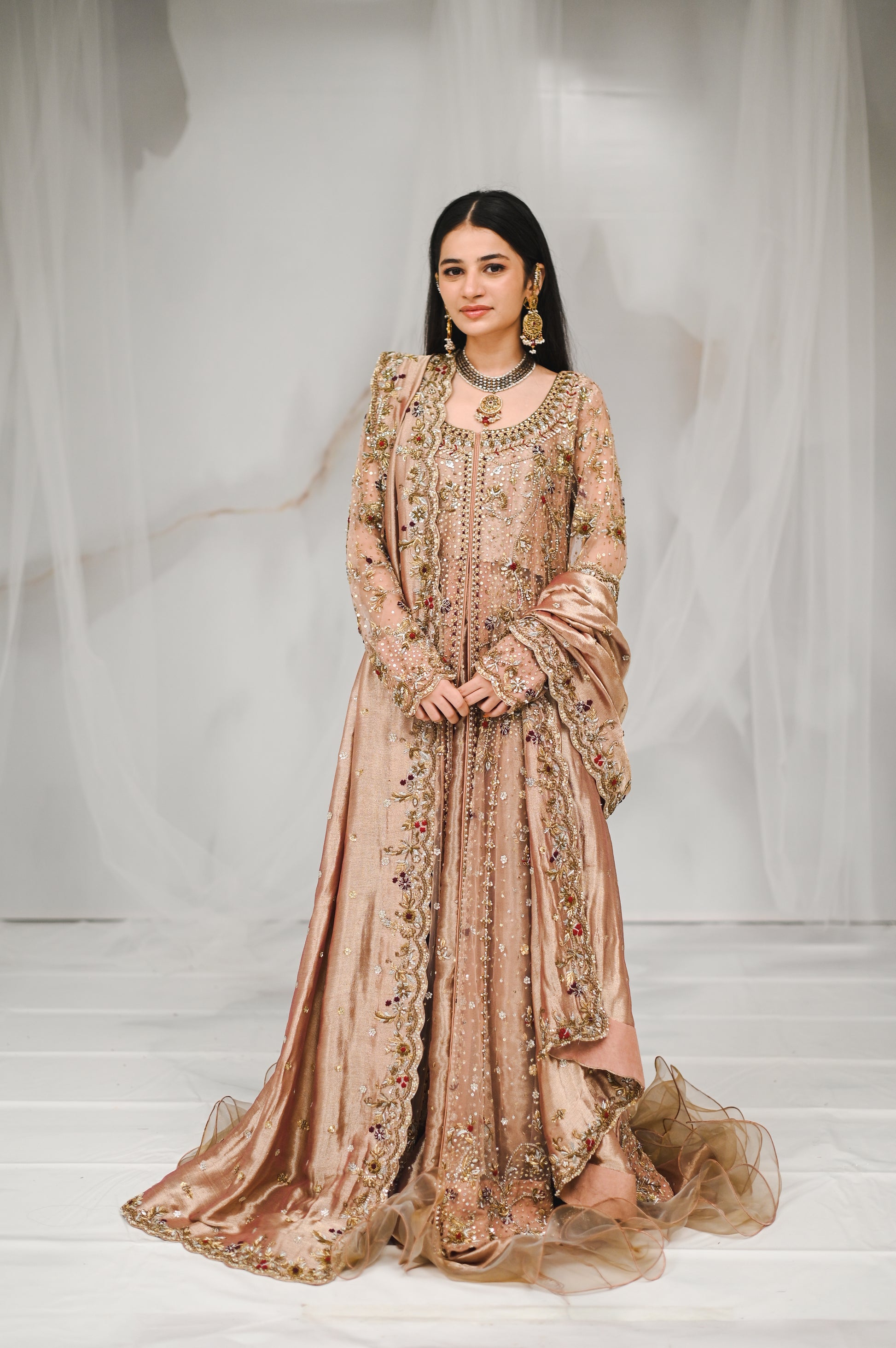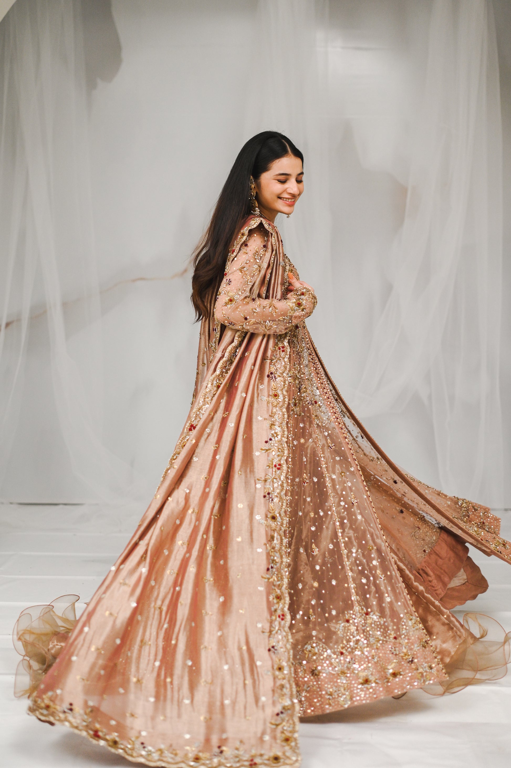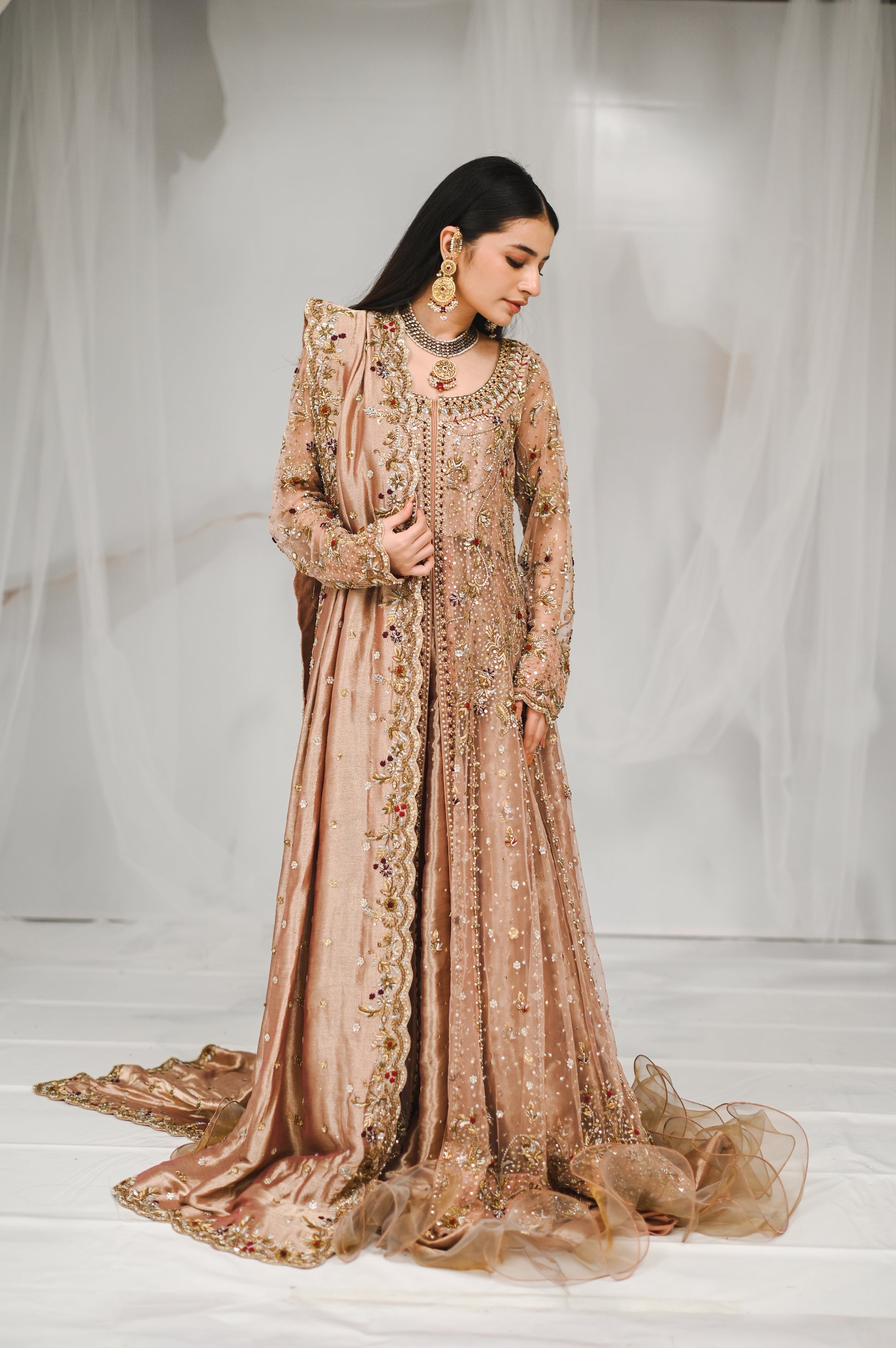 Elevate your elegance on your special day with our exquisite formal wedding wear, featuring a captivating net flair. This stunning ensemble showcases intricate handwork and exquisite Zardozi detailing, making it a perfect choice for brides or evening formal occasions. The tissue lehenga, paired with a 4-yard net dupatta adorned with a beautifully crafted handwork border on all sides, adds a touch of opulence. With its front-open design and rich craftsmanship, this outfit offers a blend of sophistication and timeless beauty, ensuring you stand out on your wedding day or any formal event. Perfect for creating unforgettable memories, this attire redefines bridal elegance.