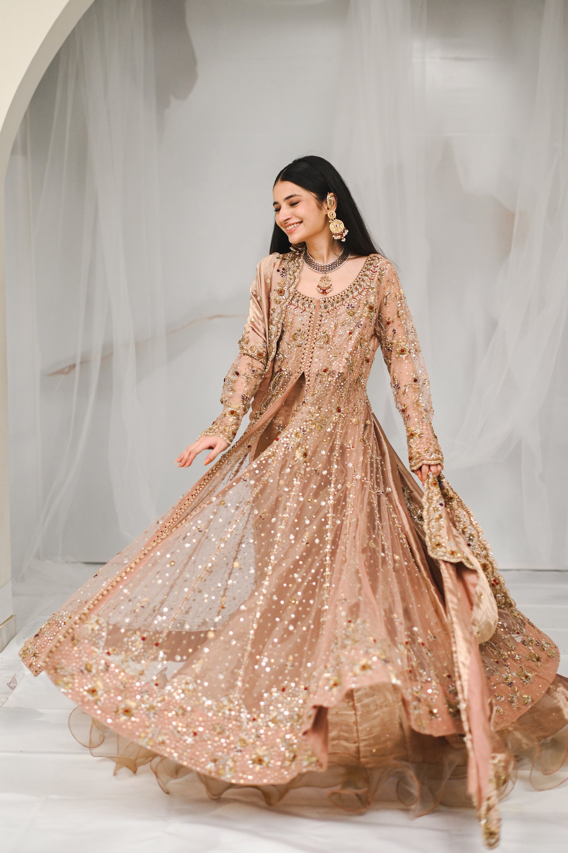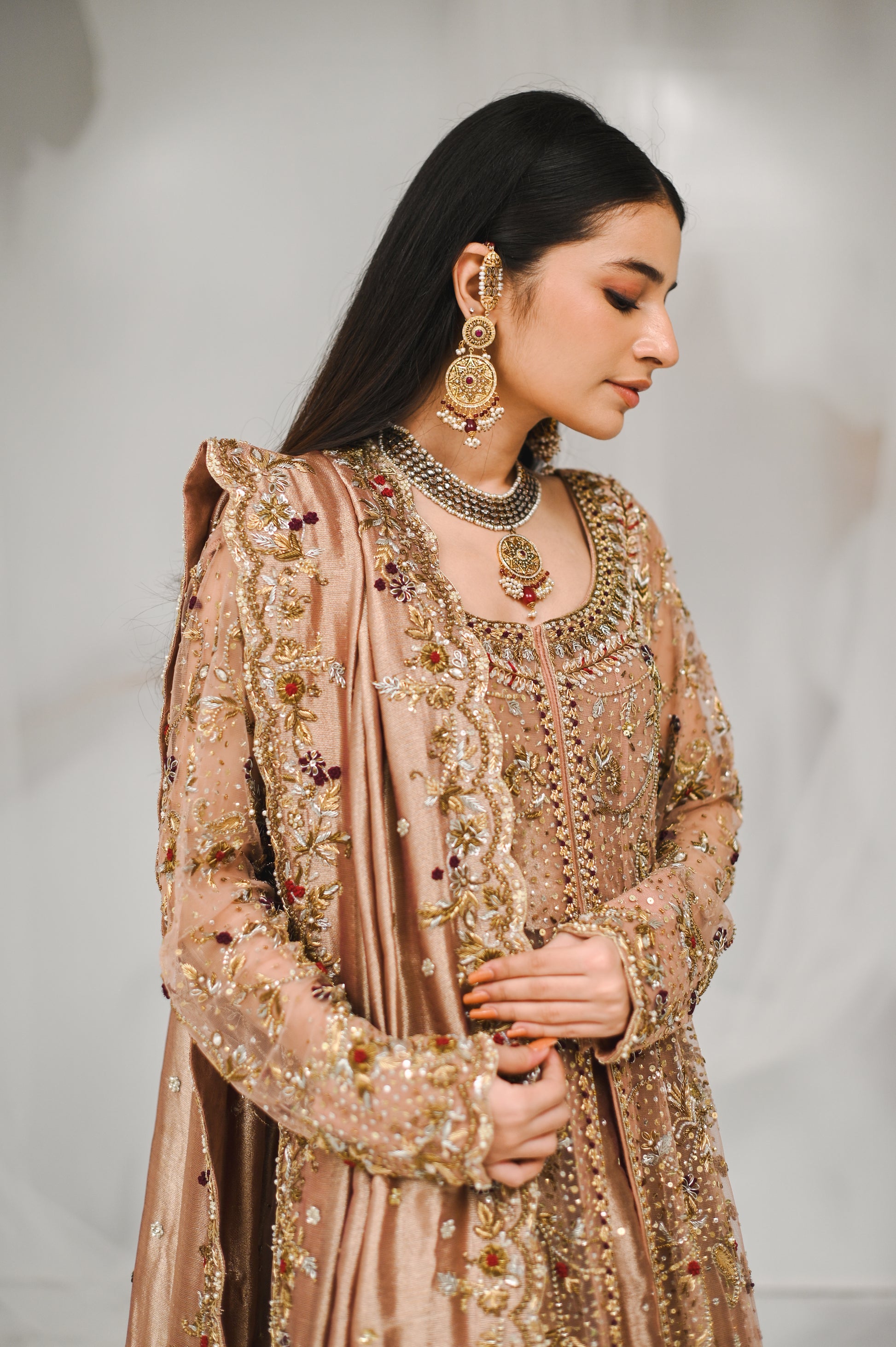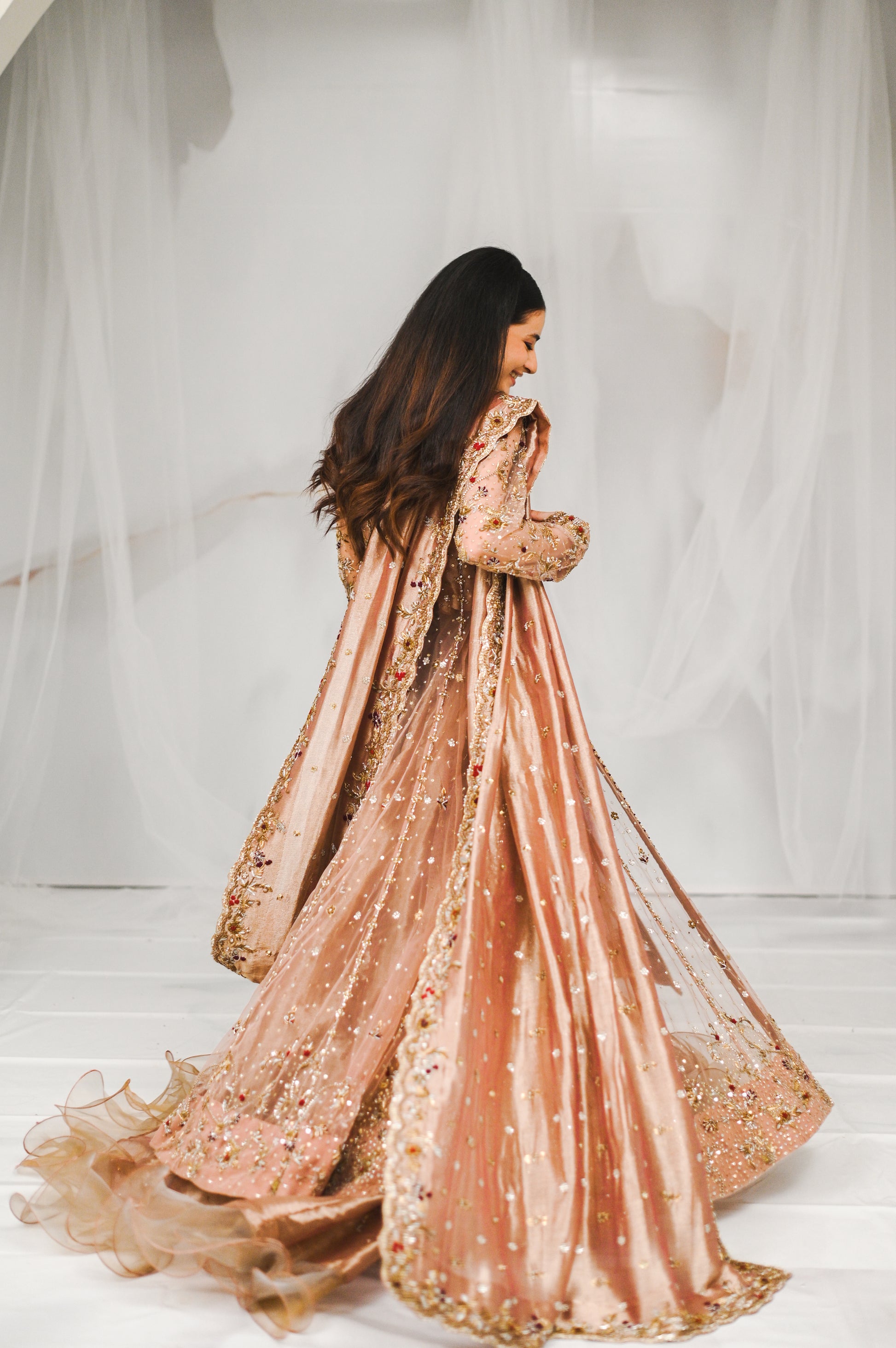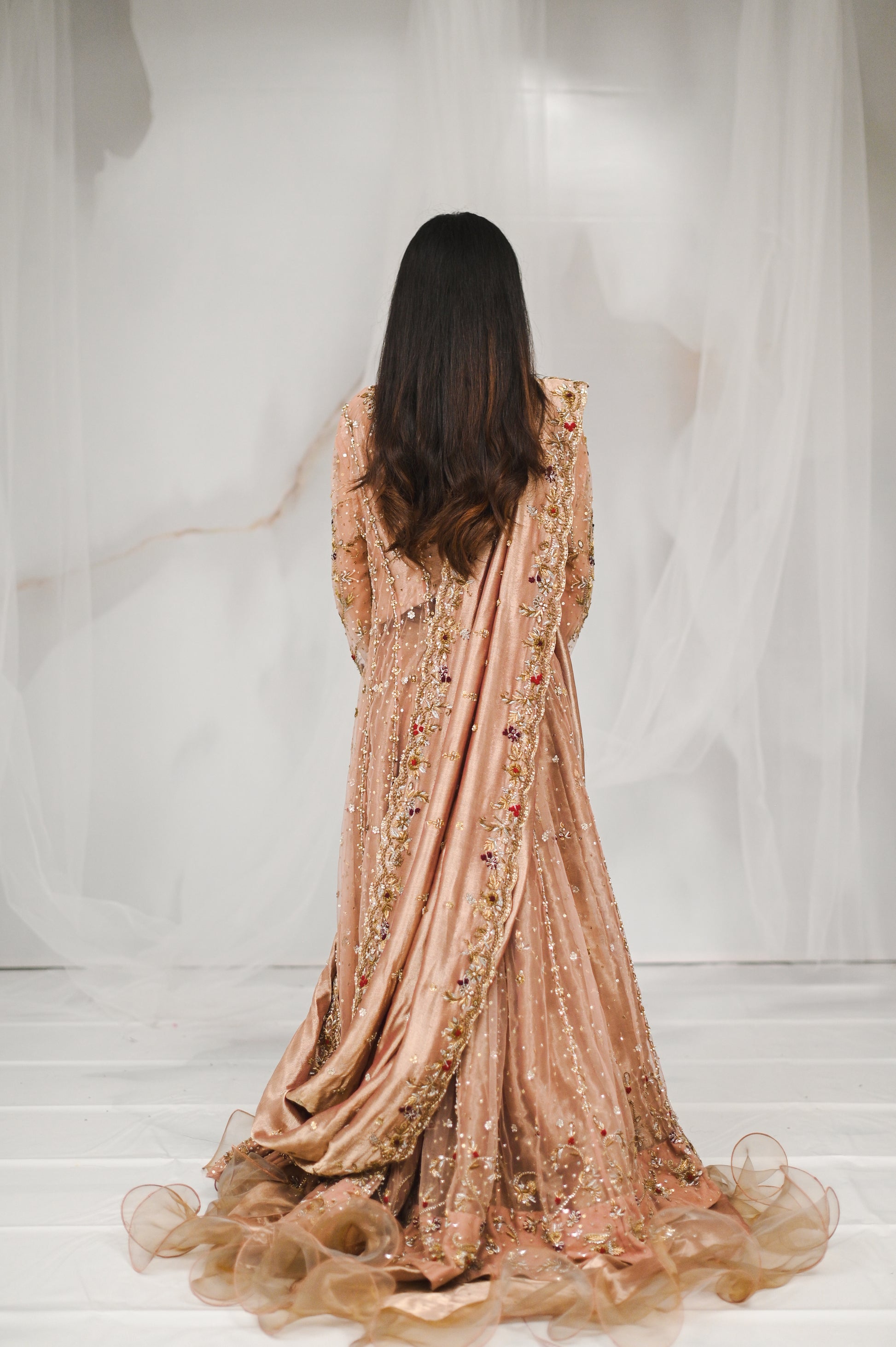 Elevate your elegance on your special day with our exquisite formal wedding wear, featuring a captivating net flair. This stunning ensemble showcases intricate handwork and exquisite Zardozi detailing, making it a perfect choice for brides or evening formal occasions. The tissue lehenga, paired with a 4-yard net dupatta adorned with a beautifully crafted handwork border on all sides, adds a touch of opulence. With its front-open design and rich craftsmanship, this outfit offers a blend of sophistication and timeless beauty, ensuring you stand out on your wedding day or any formal event. Perfect for creating unforgettable memories, this attire redefines bridal elegance.