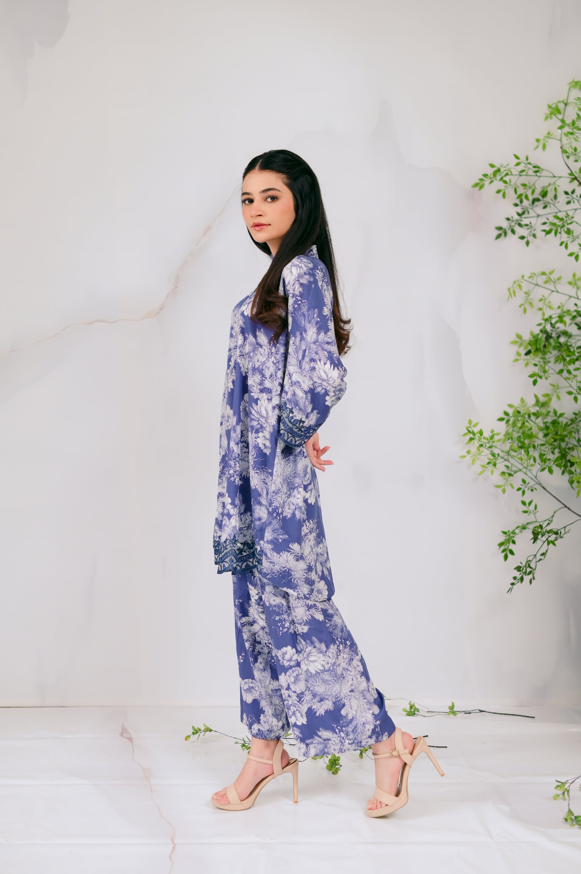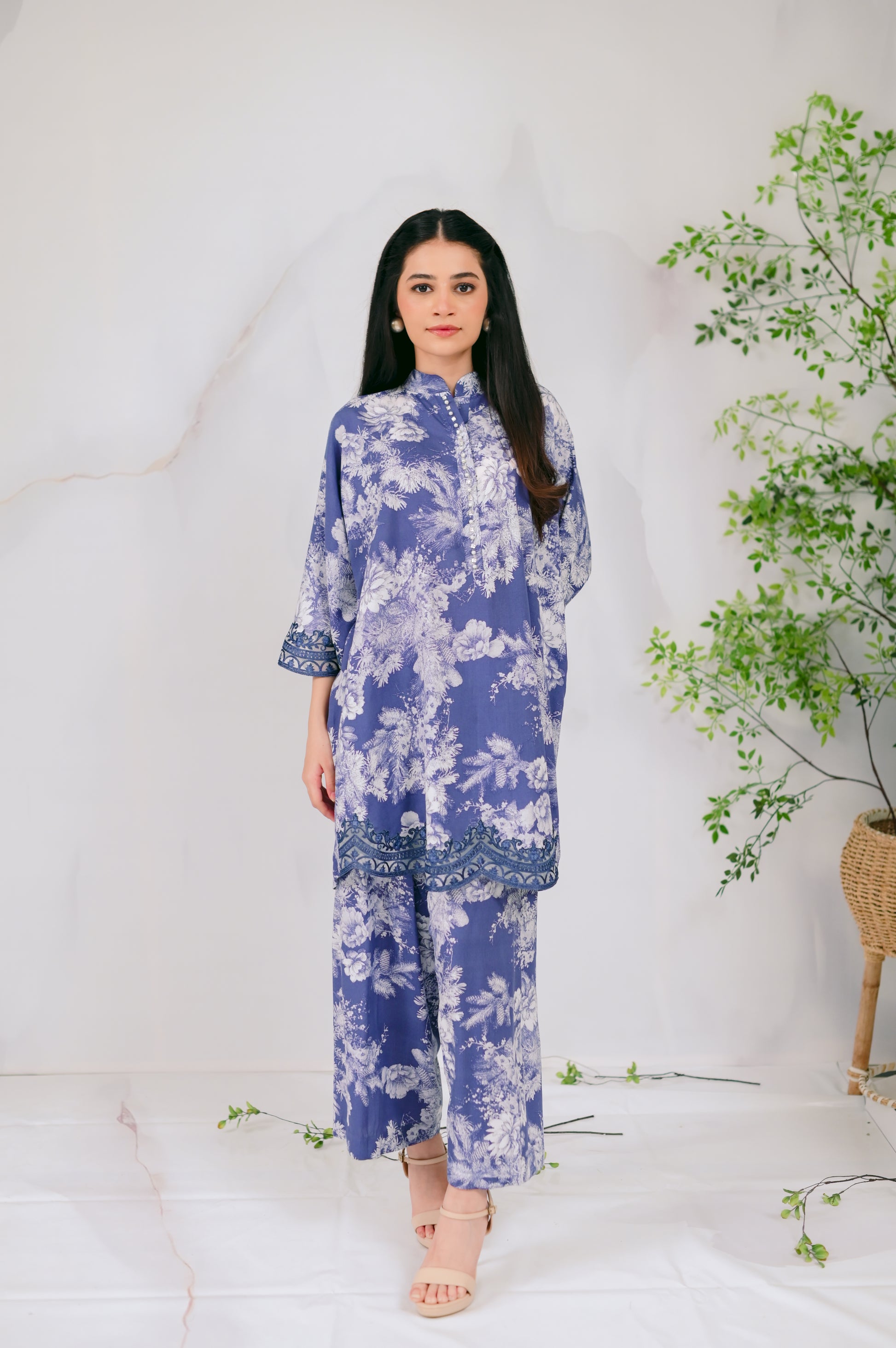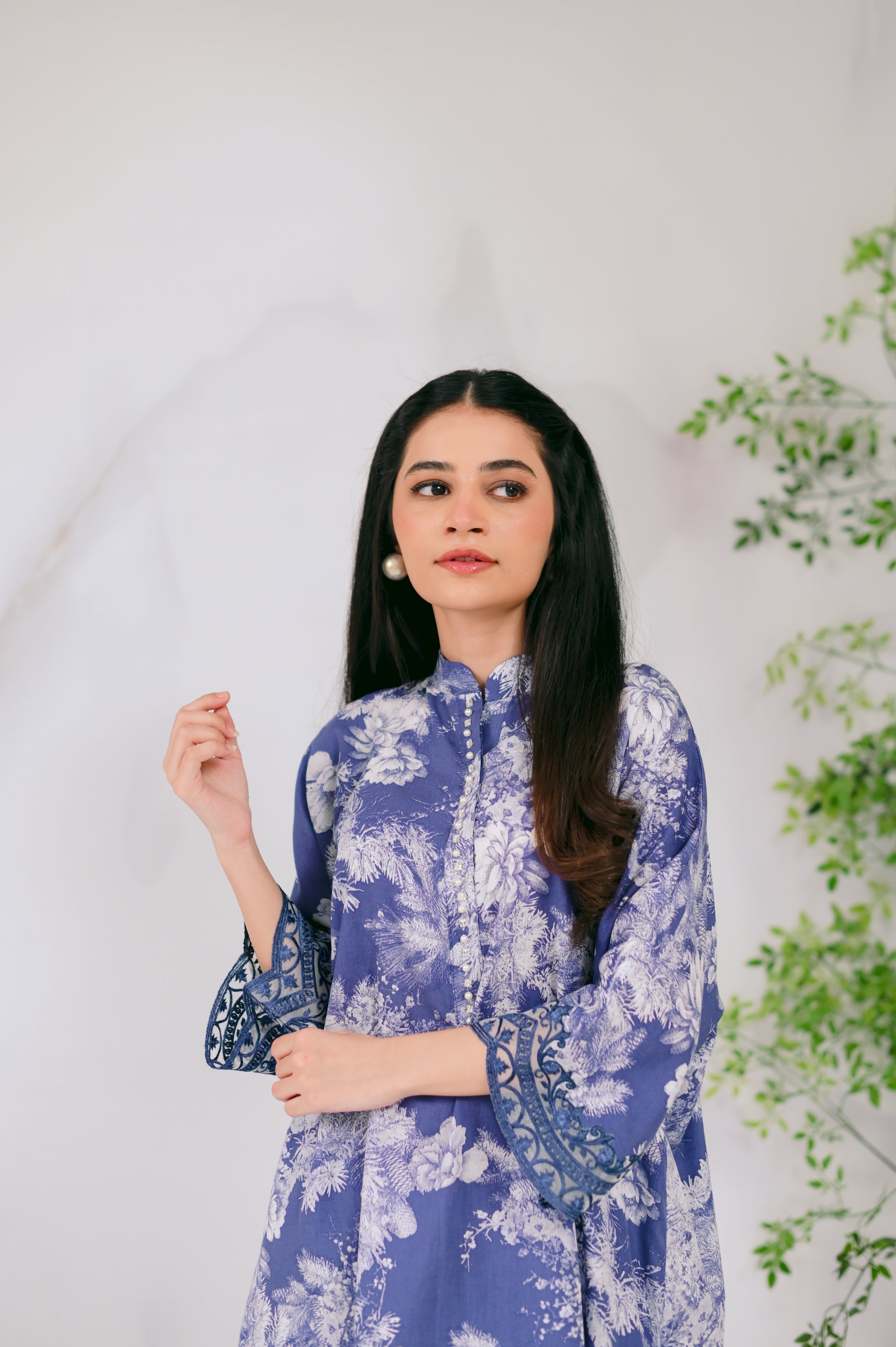 Discover our enchanting blue and white printed lawn co-ord set, elegantly crafted with delicate lace trimmings on the sleeves and hem. Perfect for any occasion, this stylish ensemble combines comfort and sophistication, making it a must-have addition to your wardrobe. Embrace effortless elegance with our standout piece!