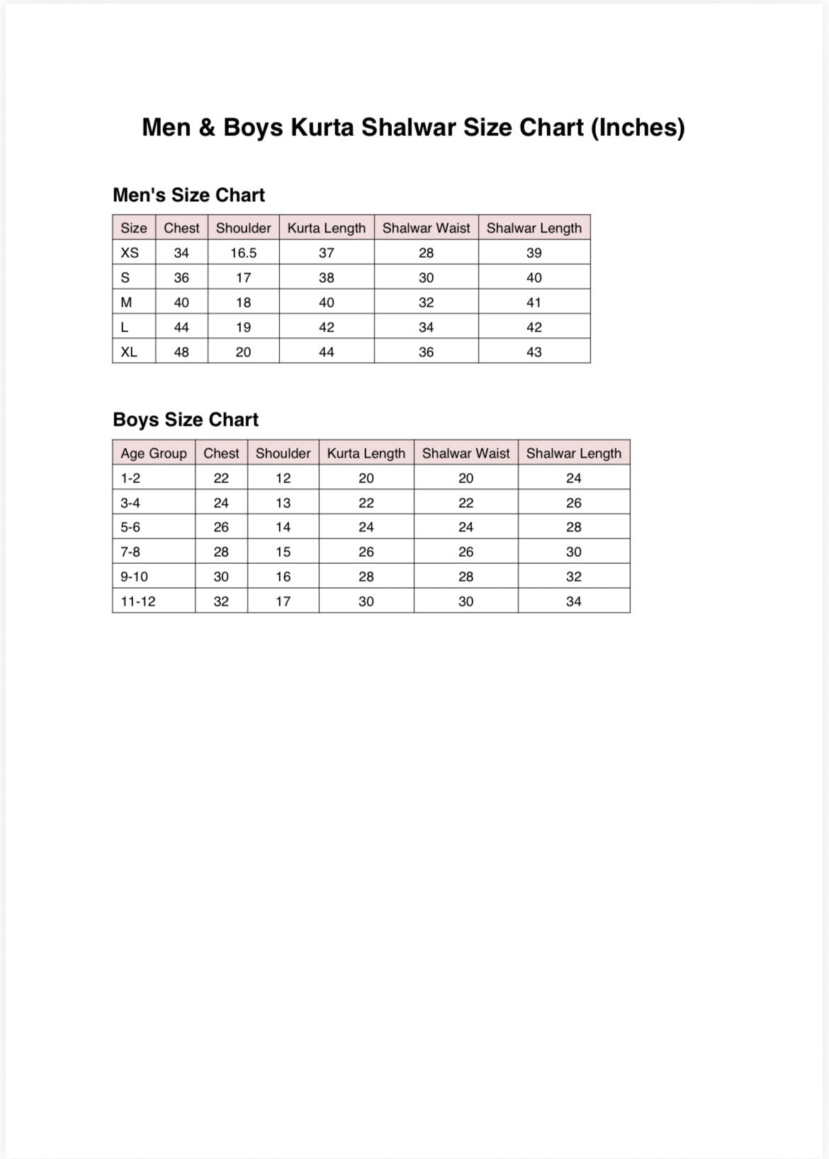 size chart